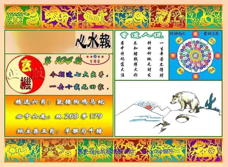 108期:心水报正版/港彩商报精简/东方心经/特码生肖诗/四字肖诗